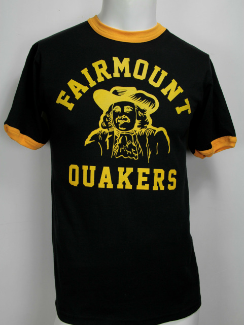 Show your Fairmount Quaker pride in this ringer t-shirt. Fairmount High School boasts graduates actor James Dean and Garfield the Cat creator Jim Davis. Cotton/Poly blend.